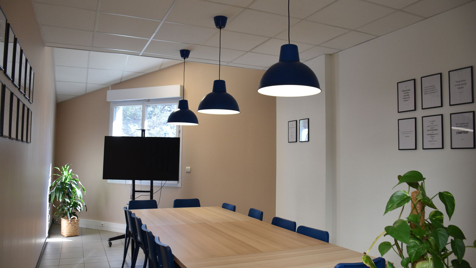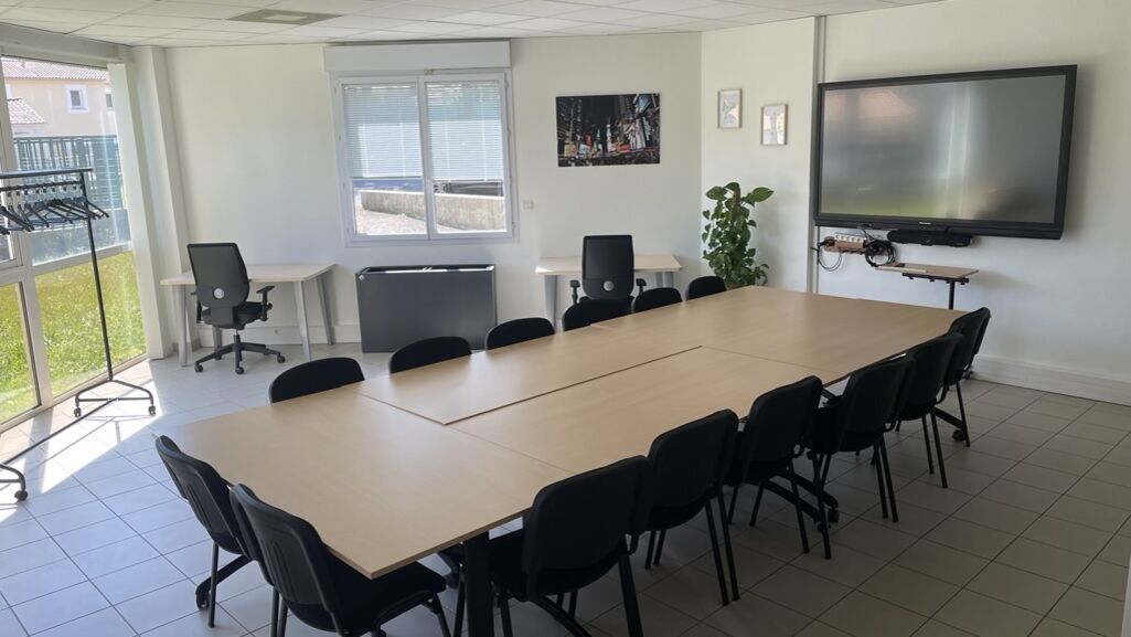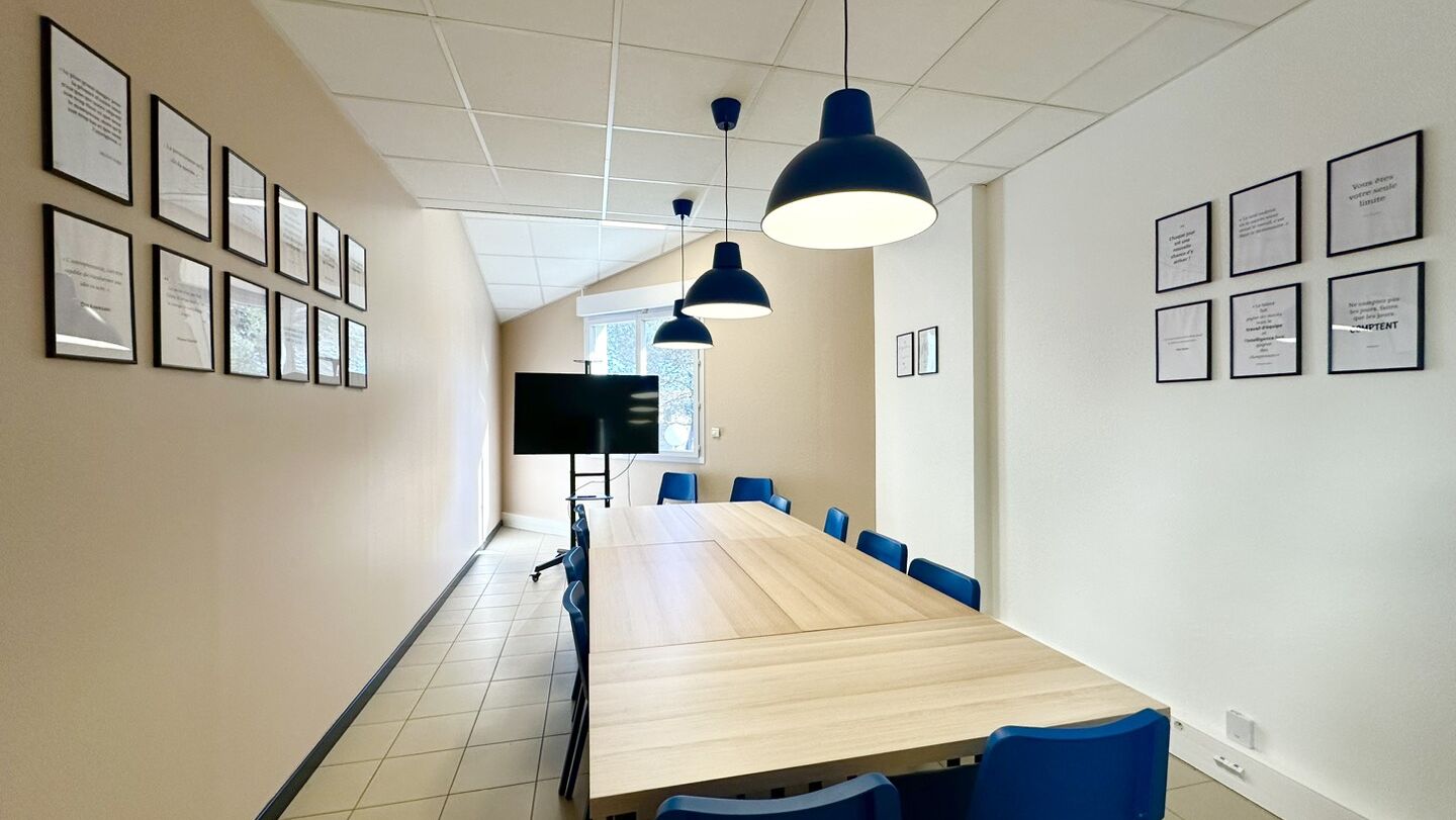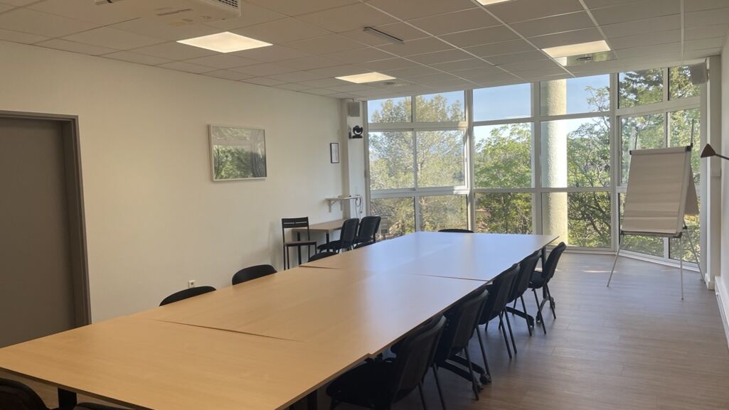 Il dispose d’un open-space avec 4 bureaux, de plusieurs salles de réunion dont une grande salle de réunion équipée d’un système de visioconférence, ainsi que d’une salle de réunion avec un écran interactif.